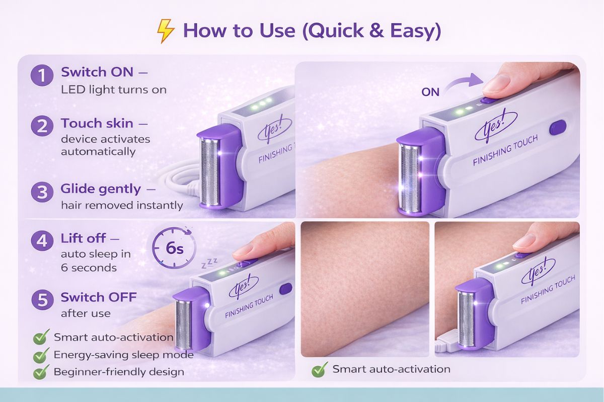 3️⃣ Glide gently – hair removed instantly